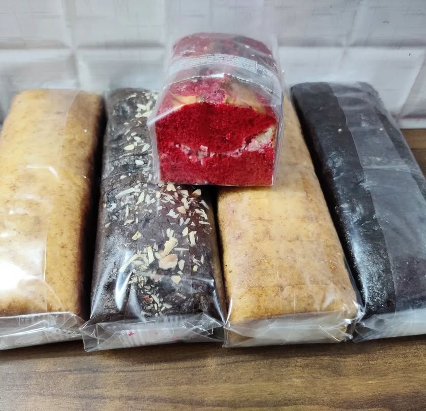 I bake a variety of moist loaf cakes, including classic vanilla, rich chocolate, red velvet, and marble swirl. They are individually wrapped for freshness and can be ordered in bulk for return gifts or hampers.