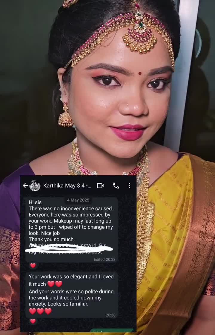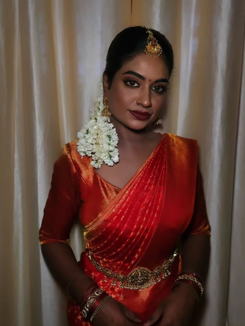 I am passionate about celebrating the beauty of every skin tone, especially the rich, deep tones that are so common in South India. I never try to lighten a bride's complexion. Instead, I use my expertise to find the perfect shades that create a flawless, radiant, and matte finish that looks absolutely regal.