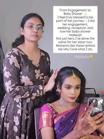 - Baby showers: I love giving moms-to-be a subtle baby shower makeup and a beautiful braid with mallipoo (jasmine flowers) - traditional yet fresh.