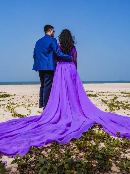 - Pre-wedding shoot outfit rental is a big one. We’ve got everything from dramatic tail gowns to sequin lehengas, chic half sarees, and even sleek satin numbers.