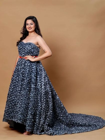For those who love texture and drama, I've curated a special collection of statement gowns. This includes voluminous ruffle gowns that create a cloud-like effect and elegant floral gowns with high-low tails, perfect for making a memorable entrance.