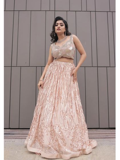 I offer a curated selection of lehengas perfect for your wedding festivities. Whether you're looking for a grand, heavily embroidered bridal lehenga for your reception or a lighter, modern floral or sequin lehenga for a sangeet or mehendi, you'll find a beautiful option to rent.