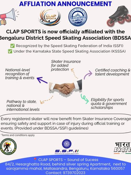 We are Clap Sports Arena, born from my love for sports and a wish to see kids ditch screens for real action. From winning medals to dancing in ethnic wear on skates, we’re not just a club - we’re one big Bengaluru family. Our coaches, like Bhoomika Gowda, bring heart and skill. We say, 'Kannadavannu ulisona, Kannadavannu belesona!' (Let’s preserve and grow Kannada). Join us, let your kids Play, Train, Shine.