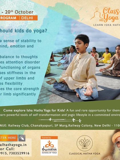 We teach kids aged 8 to 13 simple and authentic Isha Hatha Yoga routines that help with focus, flexibility, and health, using traditional methods in fun sessions across Delhi/NCR.