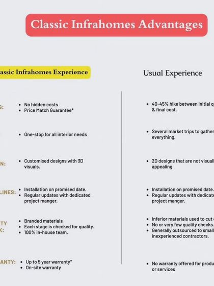 Ever seen that Salman Khan meme where he's crying about his first year in interiors? That was us once, no joke. Ten years later, we’re more like Hrithik Roshan, cool and sorted. We started Classic Infrahomes because we were fed up with saste kaam, carpenters vanishing after advance, and those ‘ye deewar tod do’ clients. Our promise is simple - one expert, one plan, full clarity. No more running around, just peace of mind and your dream space.