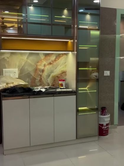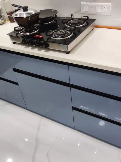 We use only branded, durable materials like Century HDHMR and Plywood, never MDF for cabinets. Explore our wide range of finishes, from high-gloss laminates to modern options like ribbed glass, and countertop choices like Nano Granite.