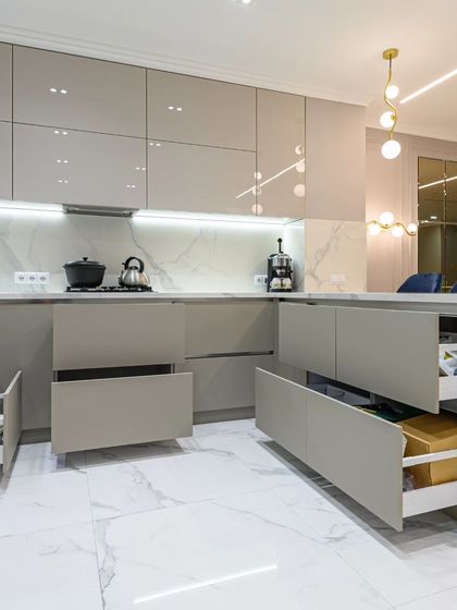 We design and build custom modular kitchens that are both beautiful and highly functional. Our kitchens feature premium materials like Century HDHMR, high-gloss laminates, and quartz countertops, paired with reliable Hettich hardware for a 5-year warranty. We specialize in various layouts and finishes, including handle-less cabinets, tall pantry units, and integrated crockery storage.