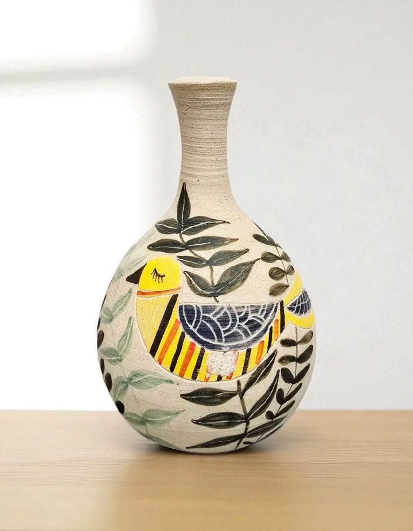 Bring nature indoors with my collection of wheel-thrown vases, jugs, and planters. Each piece has a unique shape and is often hand-painted with floral or bird motifs, designed to be a beautiful home for your flowers and plants.