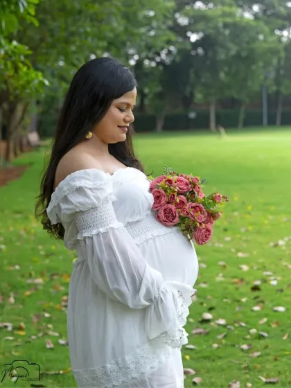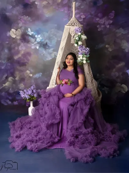 My Whitefield studio’s filled with every style of maternity gown - flowy, fitted, ruffles, lace, sequins. Mix and match for 3-5 looks in one shoot. It’s your call, your comfort.