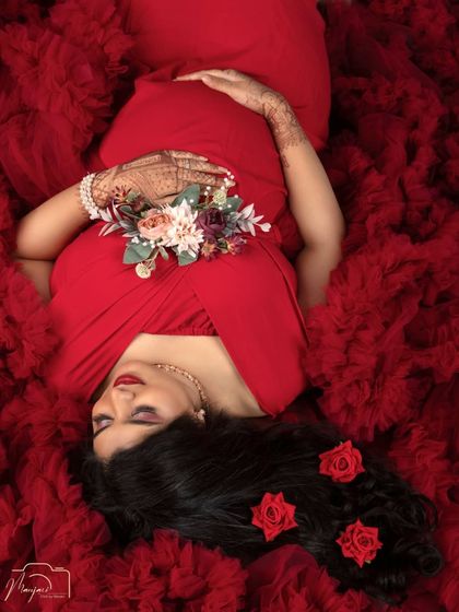 My Whitefield studio’s filled with every style of maternity gown - flowy, fitted, ruffles, lace, sequins. Mix and match for 3-5 looks in one shoot. It’s your call, your comfort.