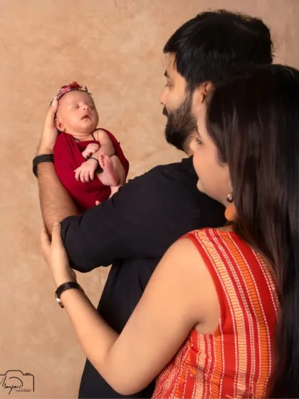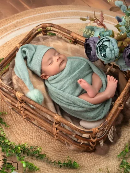 I do newborn photo sessions in my Whitefield studio with natural setups, props, and family portraits, focusing on relaxed and detailed shots of your baby’s early days.