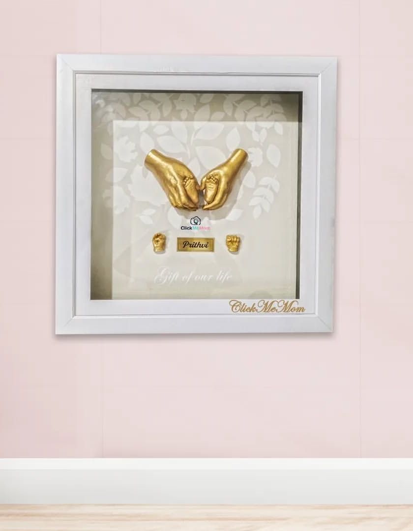 Freeze a moment of your family's love. I create beautiful keepsakes that include hands of parents, siblings, and your little one, telling a story of your unique bond. These frames can capture your family's growth over the years.