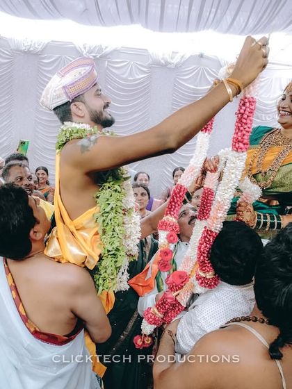Hey, we’re Clicktech Productions. Camera in hand, always chasing those real moments, not just poses. We started out in Bangalore but now, honestly, we’ll go anywhere love takes us—Coorg, Goa, Dubai, Maldives, you name it. We love seeing couples' dreams unfold, whether it’s a big South Indian wedding or a wild pre-wedding shoot on the beach. Every story’s different, and that’s what keeps us hooked.