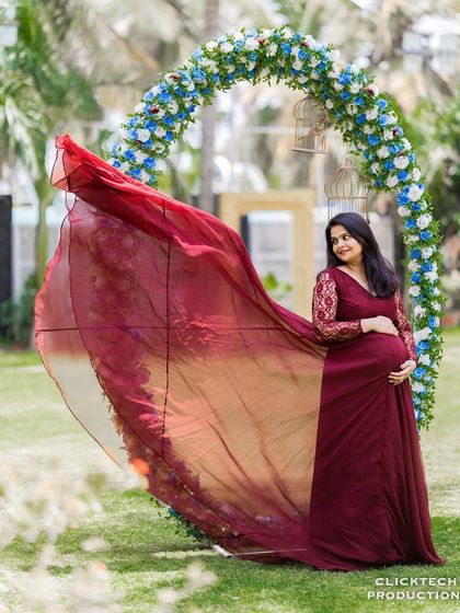- Gowns? Yes, I have those flowy, dramatic maternity gowns. But if you want to rock a saree for a traditional Indian maternity shoot, or keep it chill with casuals, I’m all in.