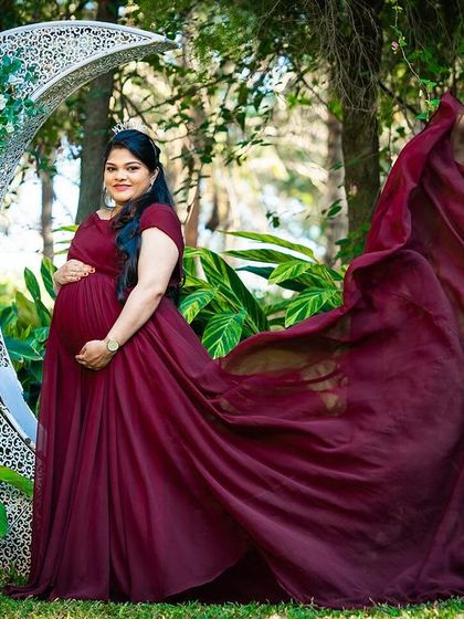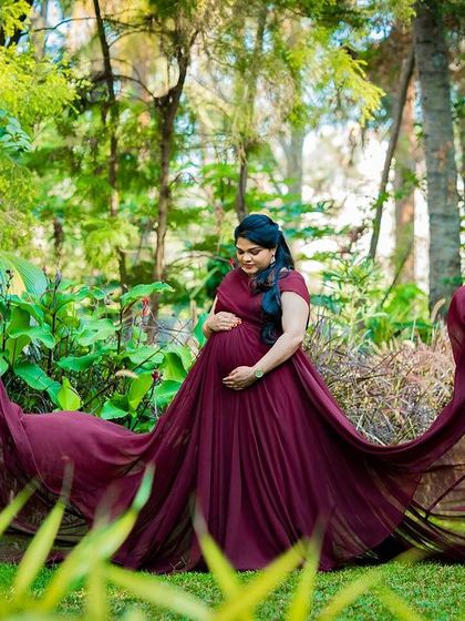 I offer a collection of beautiful, flowing maternity gowns to give your photos a dramatic and elegant feel. This gallery shows how different gowns, from vibrant reds to sunny yellows, can create a stunning visual impact in both garden and studio settings.