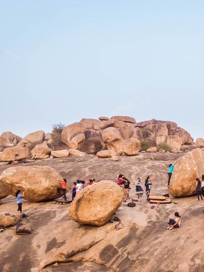 We run multi-day climbing and wellness retreats for women of all skill levels, where we handle everything from gear to food so you can focus on climbing, learning, and connecting in outdoor spots like Hampi and Badami.