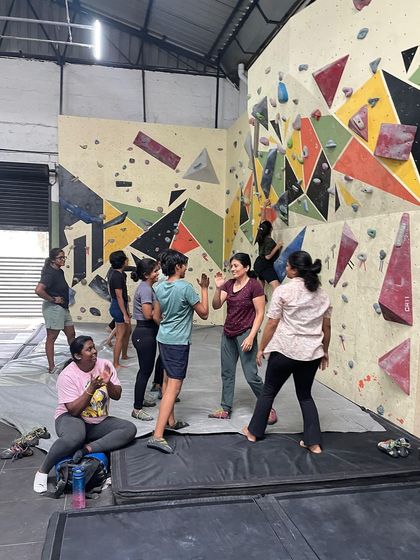 What We Offer - Women-only climbing workshops, beginner-friendly bouldering sessions, community meetups, and our big outdoor climbing festivals in Hampi.