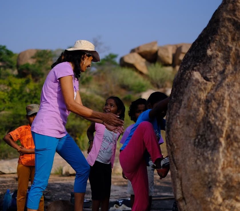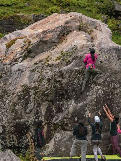 Climbing is a tool for empowerment. We tackle important conversations about mental health, menstruation in the outdoors, and overcoming fear. As an NGO, we are also committed to making climbing accessible, running outreach programs with local communities, like the village schoolgirls in Bengal, to share the joy and confidence that climbing brings.