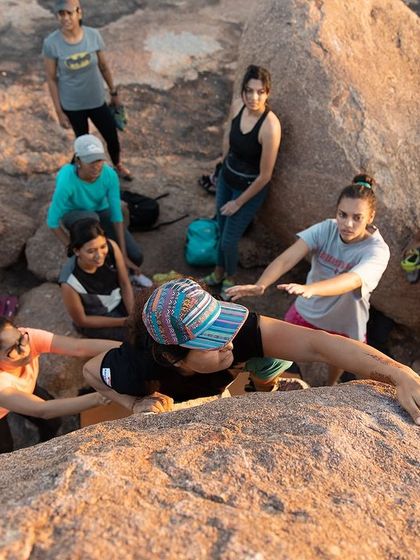 What We Offer - Women-only climbing workshops, beginner-friendly bouldering sessions, community meetups, and our big outdoor climbing festivals in Hampi.