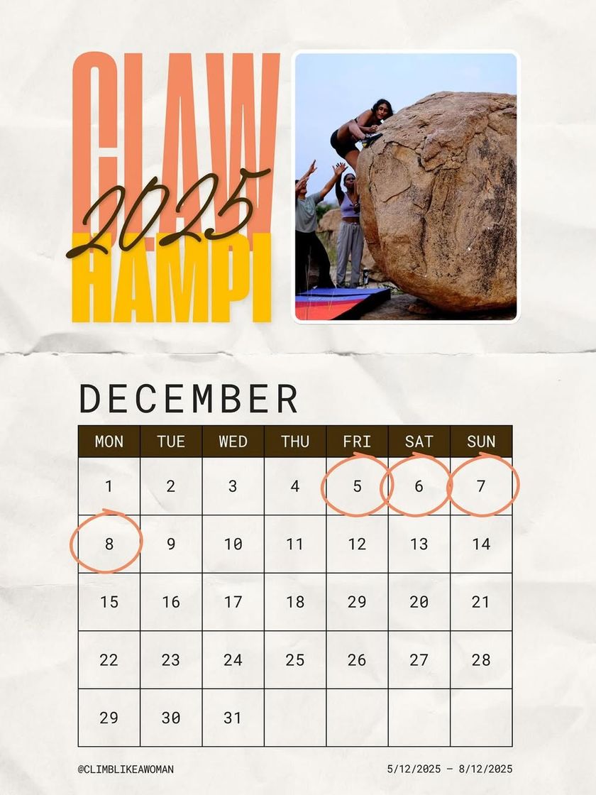 This is where the action happens. See our community of women bouldering in the wild landscapes of Hampi, rope climbing in Badami, and tackling challenging routes in Sethan. We provide all the gear and guidance, so whether you're a total beginner or an experienced climber, you can focus on the movement and the rock.