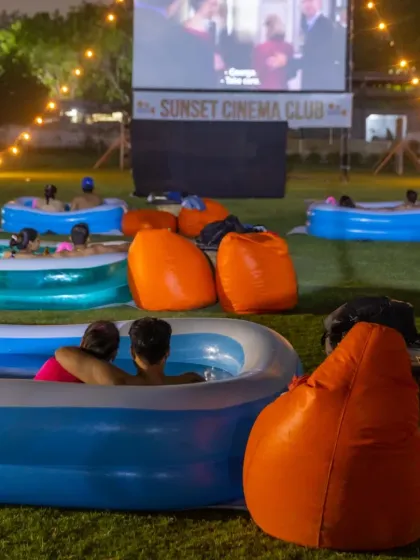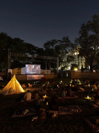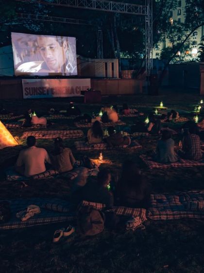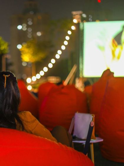 Open-Air Cinema - Watch your favourite movies outdoors. Bollywood outdoor screening, Hollywood hits, relaxed vibes, bean bags, stars.
