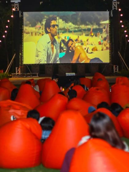 Open-Air Cinema - Watch your favourite movies outdoors. Bollywood outdoor screening, Hollywood hits, relaxed vibes, bean bags, stars.