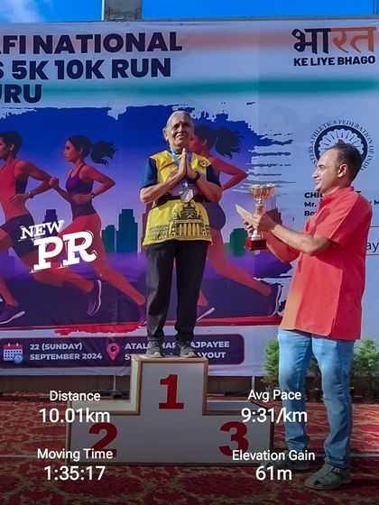 Hey, I’m Pramod. Running’s not just a sport for me, it’s how I live. Started coaching back in Pune, saw my athletes win big. Did the corporate thing for years, but the track kept calling. Now, with Jayanagar Jaguars, I’ve coached thousands. Wrote 'ನೀವೂ ಓಡಬಹುದು' (You can also run) in Kannada, because I believe anyone can run. If I’m not coaching, I’m trekking somewhere quiet, soaking in the mountains, or cheering on my family. For me, it’s all about moving forward, one step at a time.