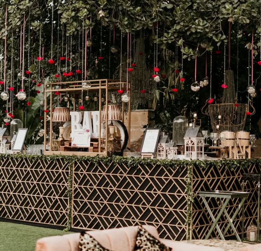 Your bar should match your scene, not just sit in a corner. I build complete bar experiences from the ground up to fit your event's theme perfectly. Whether it's an elegant green and gold sangeet, a futuristic neon party, or an Arabian Nights fantasy, I handle the bar design, decor, and even costumed bartenders to create a fully immersive world for your guests.