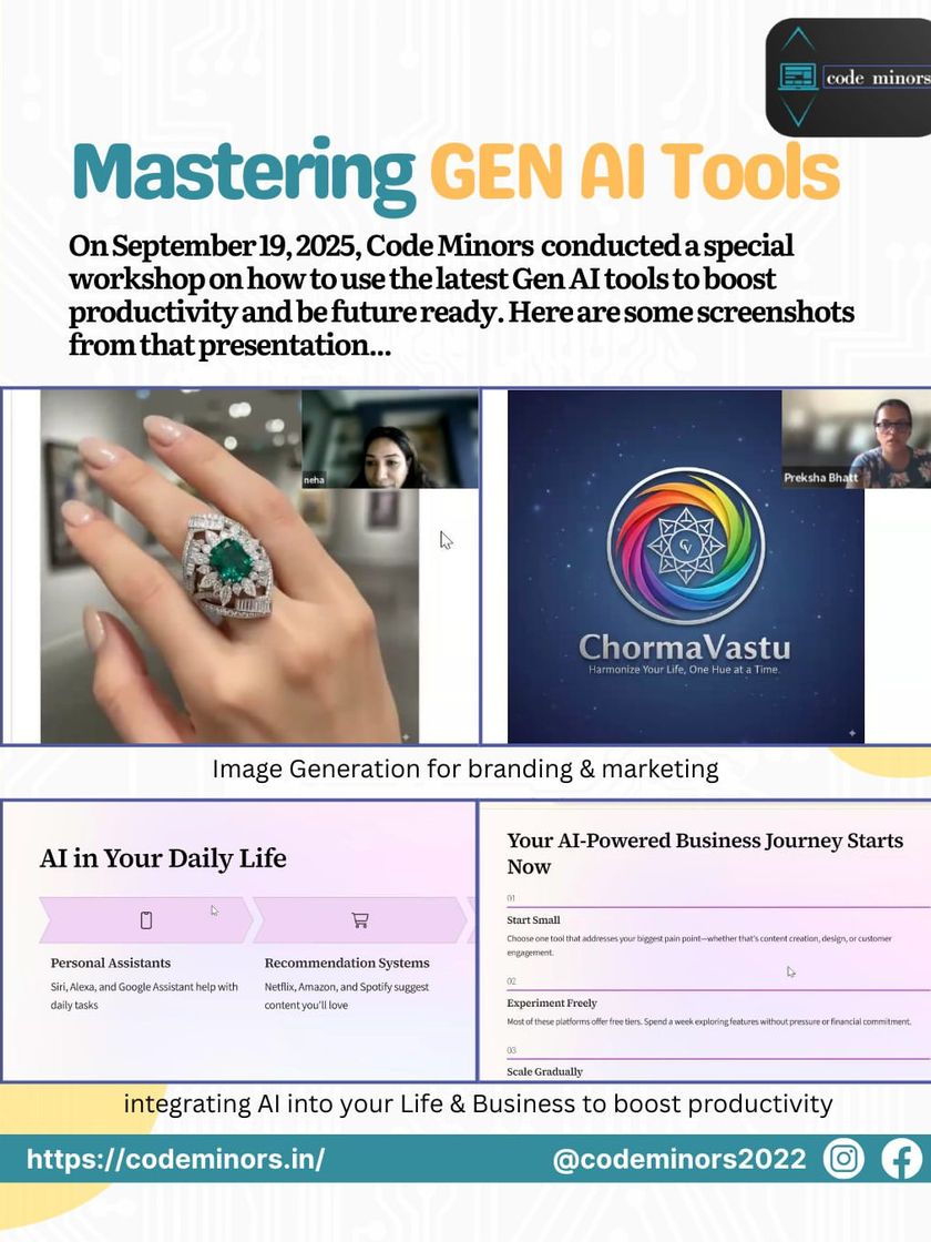 We help entrepreneurs and small teams leverage Artificial Intelligence to automate repetitive tasks, boost creativity, and make smarter business decisions. This gallery showcases our thought leadership on AI's impact and highlights practical tools we teach in our workshops.