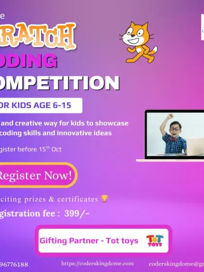We run an online Scratch coding competition for kids aged 6 to 15, where they build projects on a set theme, get stepwise support, and everyone gets a certificate.
