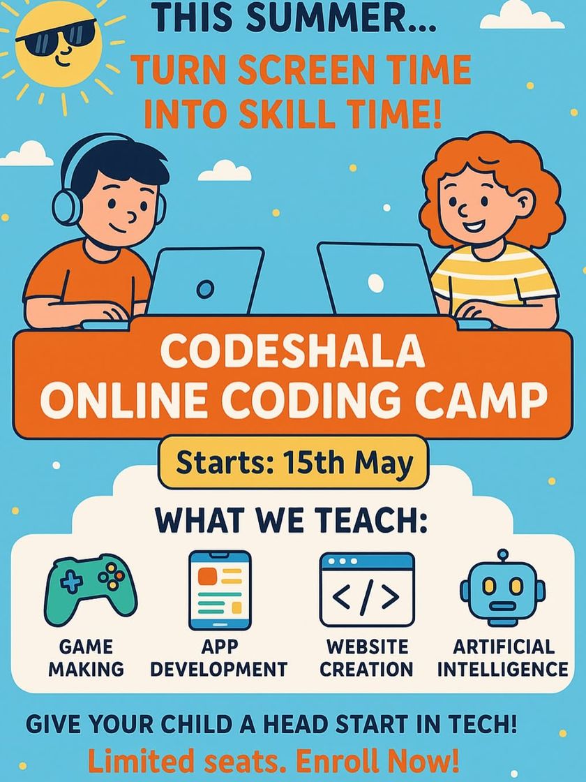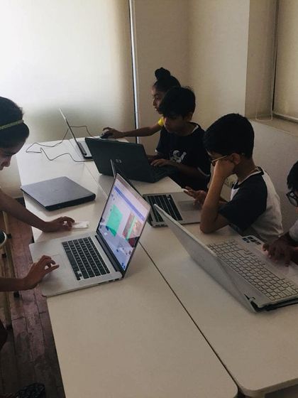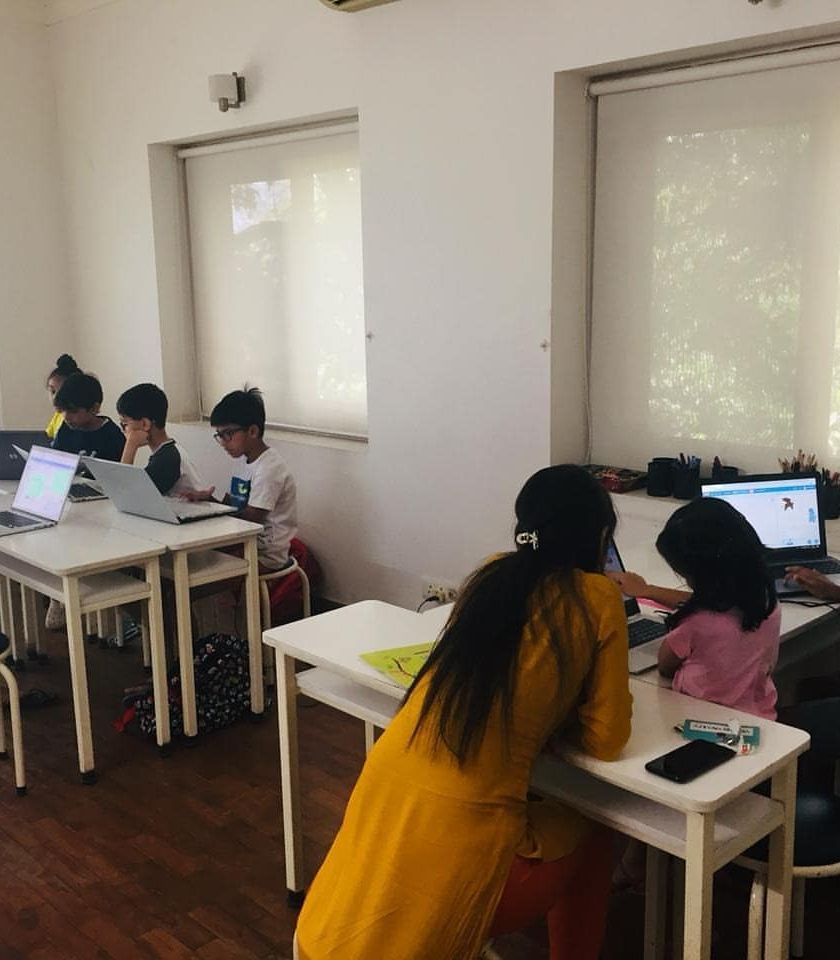 Our camps are hands-on, interactive, and fun. These photos show our in-person group classes in Delhi-NCR, where students collaborate and receive one-on-one guidance from our instructors.