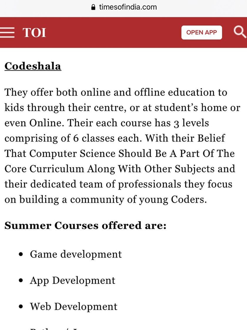 We are proud to be featured by leading publications like The Times of India and India Today. This recognition highlights our commitment to providing top-quality coding education for children across India.