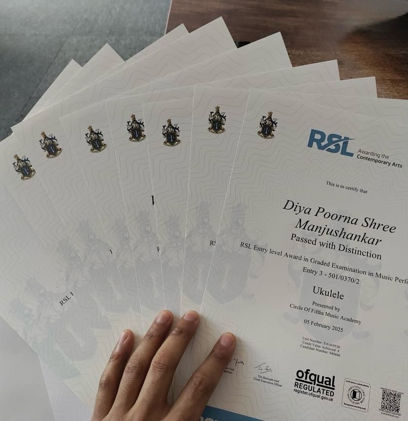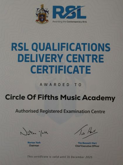 We are an authorized examination center for RSL (Rockschool London) and also train students for Trinity College exams. We are incredibly proud of our students' success, with many achieving Merit and Distinction in their graded exams.