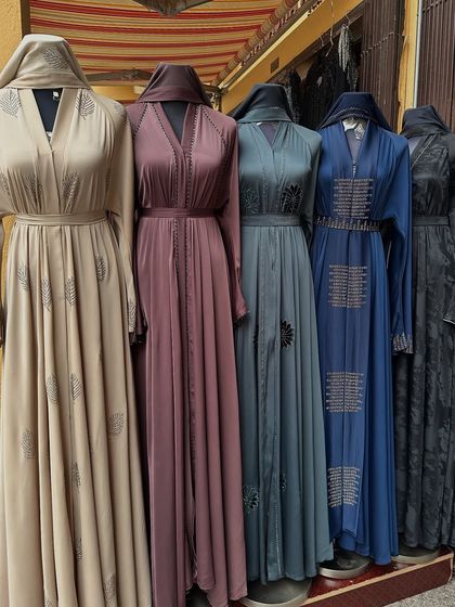 - Authentic abayas from Dubai: From simple, cantik (beautiful) daily styles to glam pieces, with embroidery, beading, lace, and a mix of colours