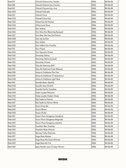 Browse my full collection of inspired scents, sourced directly from Saudi Arabia. I offer alternatives for popular designer and niche fragrances for women, men, and unisex, all in 50ml bottles.