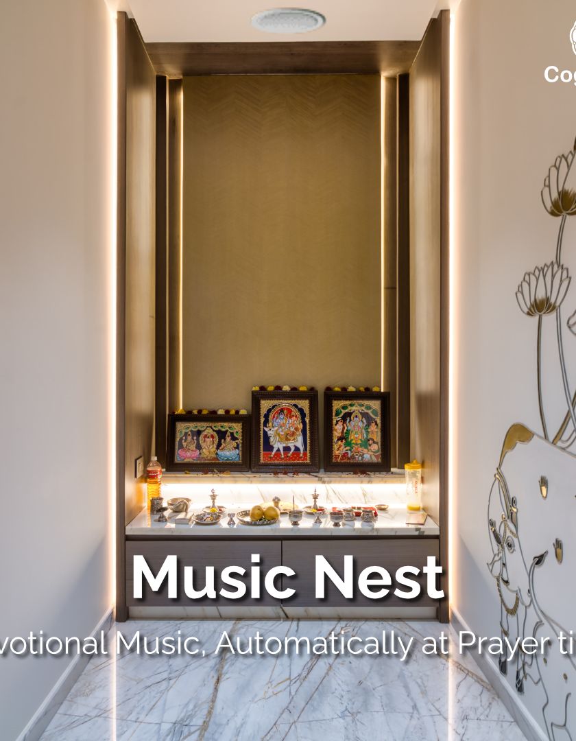 Our MusicNest system delivers high-quality, synchronized audio to any room in your home, from the pooja room to the balcony, with personalized playlists for every family member. We also integrate full home theatre experiences, allowing you to launch a cinematic mode with a single touch.