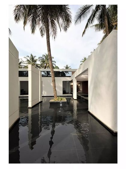 - Always chasing natural light - think big windows, skylights, and jaali screens (perforated walls) that throw cool patterns around the room all day.