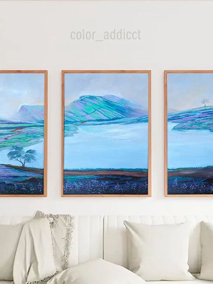 - Large Landscape Wall Painting: I grew up in Chikmagalur, so I love painting hills, coffee plants, and that village calm. These pieces bring nature indoors, sometimes across lots of panels.