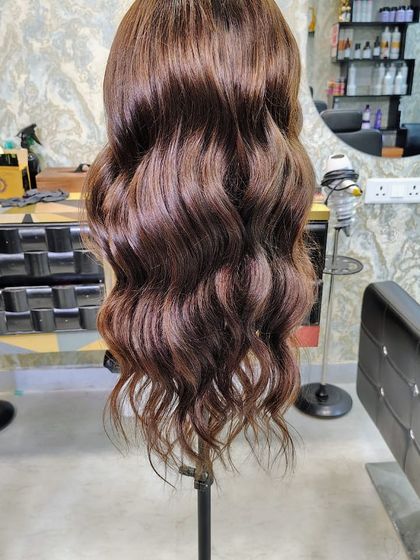Hello, hum Color Chic se. Log jab baalon ki dikkat leke aate hain - chhote baal, hair fall ya chemo ke baad, toh hum poori koshish karte hain ki unke chehre pe smile laa sakein. Shimla se Haryana tak, sab humpe bharosa karte hain. Hum full lace silk base wigs bhi banate hain chemo patients ke liye. Yahan sab kuch custom hota hai, ek ek piece pe time lagta hai. Ready-made toh humare yahan milta hi nahi!
