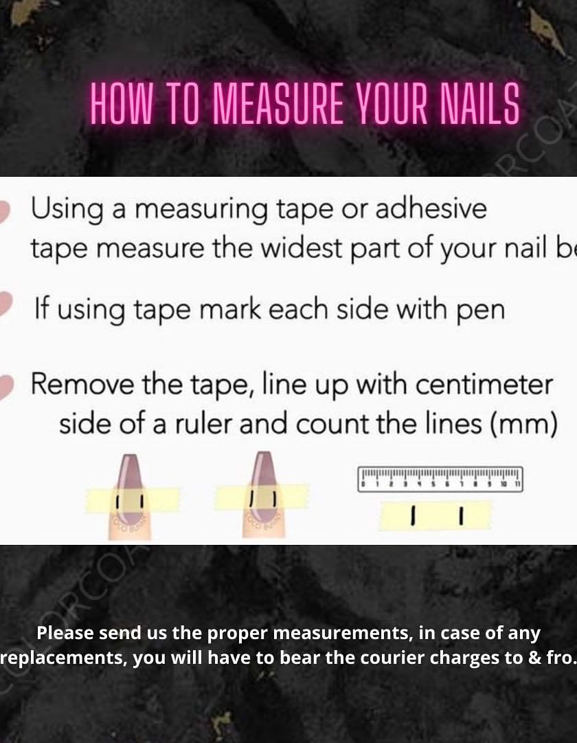 The secret to press-on nails that look like they came from a salon is a custom fit. Store-bought sizes just don't work. Follow this simple guide to measure your nails accurately so I can create a set that is made just for you.
