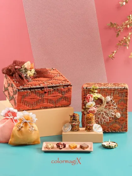 We believe presentation is everything, which is why we offer a diverse range of signature packaging. Choose from eco-friendly woven jute baskets, modern transparent PVC bags, elegant hardboard boxes, or luxurious leather trunks to create a truly unique gift.