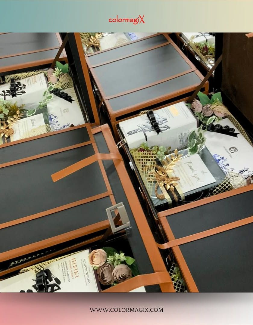 We invite you to step into the world of ColormagiX at our flagship showroom in New Delhi. Explore our vast collection of luxury hampers, gourmet treats, and premium packaging, and let our team help you create the perfect gift.