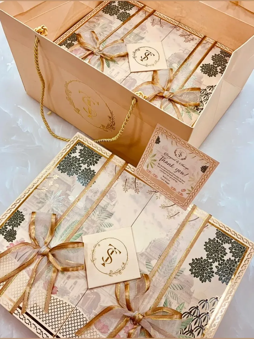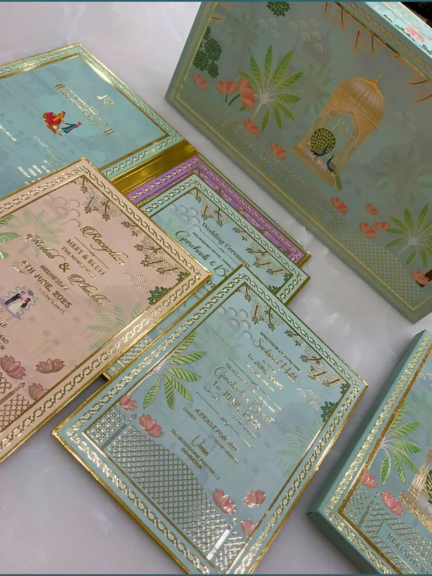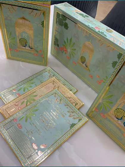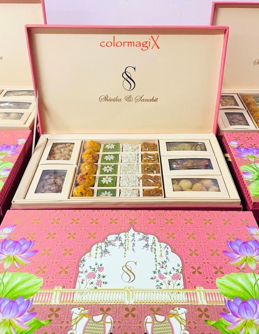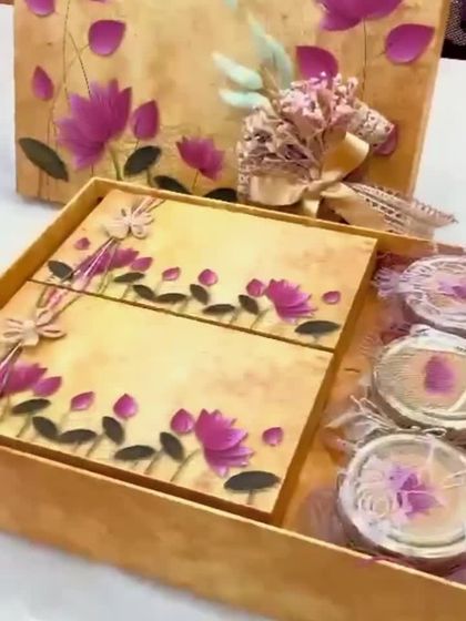 Set the tone for your grand celebration with our luxury wedding invitation hampers. We go beyond paper, pairing your beautifully designed cards with exquisite gift boxes filled with sweets or personalized keepsakes. Our designs range from traditional Pichwai art to modern floral motifs, all customizable to your story.
