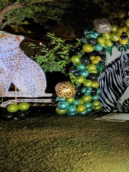 This is one of my most requested themes for kids' birthdays, especially for first birthdays. I create an immersive jungle experience with balloon arches, large animal cutouts, safari jeep photo booths, and lush green backdrops to make your little one's "Wild One" party unforgettable.