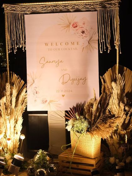 - Sangeet and Cocktail nights are my playground for boho wedding decor - think disco balls, fairy lights, Moroccan lanterns, and macrame backdrops. If you want a party look, I’m all in for bold colors and fun props.