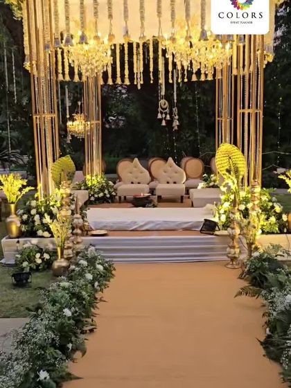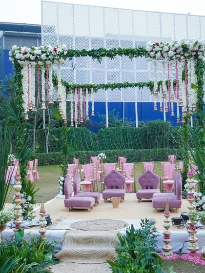 - Mandap decoration ideas? I love both the classic ivory-gold look with rajnigandha (tuberose) and crystals, and the fresh pink-green garden style with terracotta bells and lotus motifs.