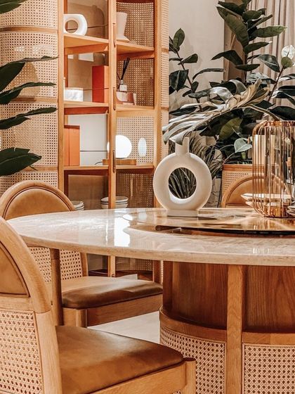 We craft high-end furniture collections that blend luxury with environmental consciousness. Our pieces feature premium sustainable materials like solid oak, walnut, and rattan, often accented with brass and leather details.