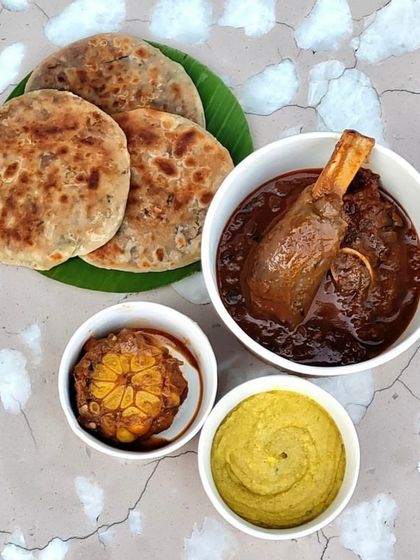 - Champaran Mutton, slow-cooked till it’s melt-in-your-mouth, paired with Sattu Parantha