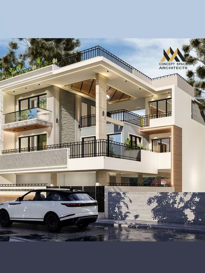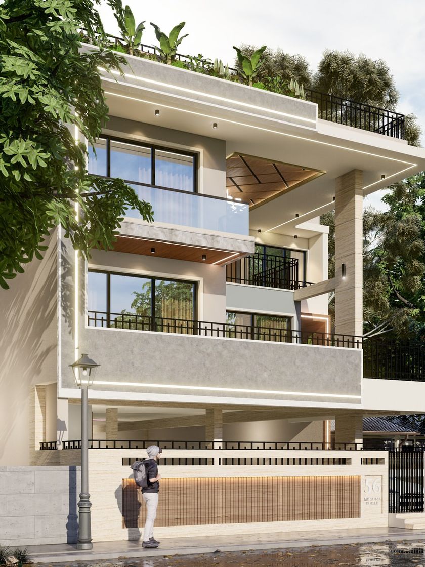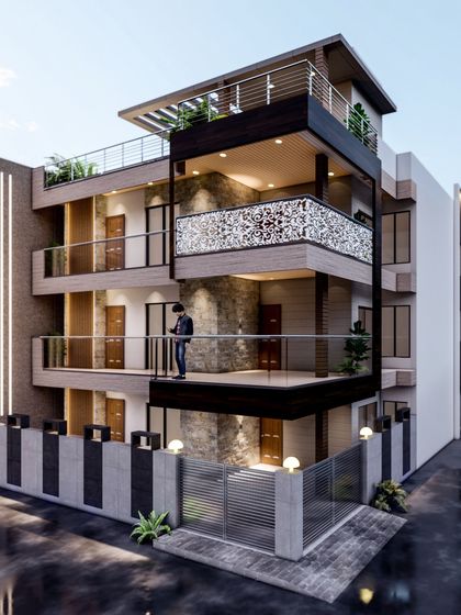 We specialize in creating modern, minimalist homes with clean lines and functional spaces. This gallery showcases a variety of our residential facade designs, from multi-story family homes in Noida to luxury villas, each tailored to the client's lifestyle.