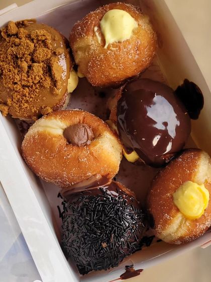 I make fresh gourmet donuts and bombolinis from scratch every day using real fruit, brioche dough, and offer custom flavours and gift boxes.